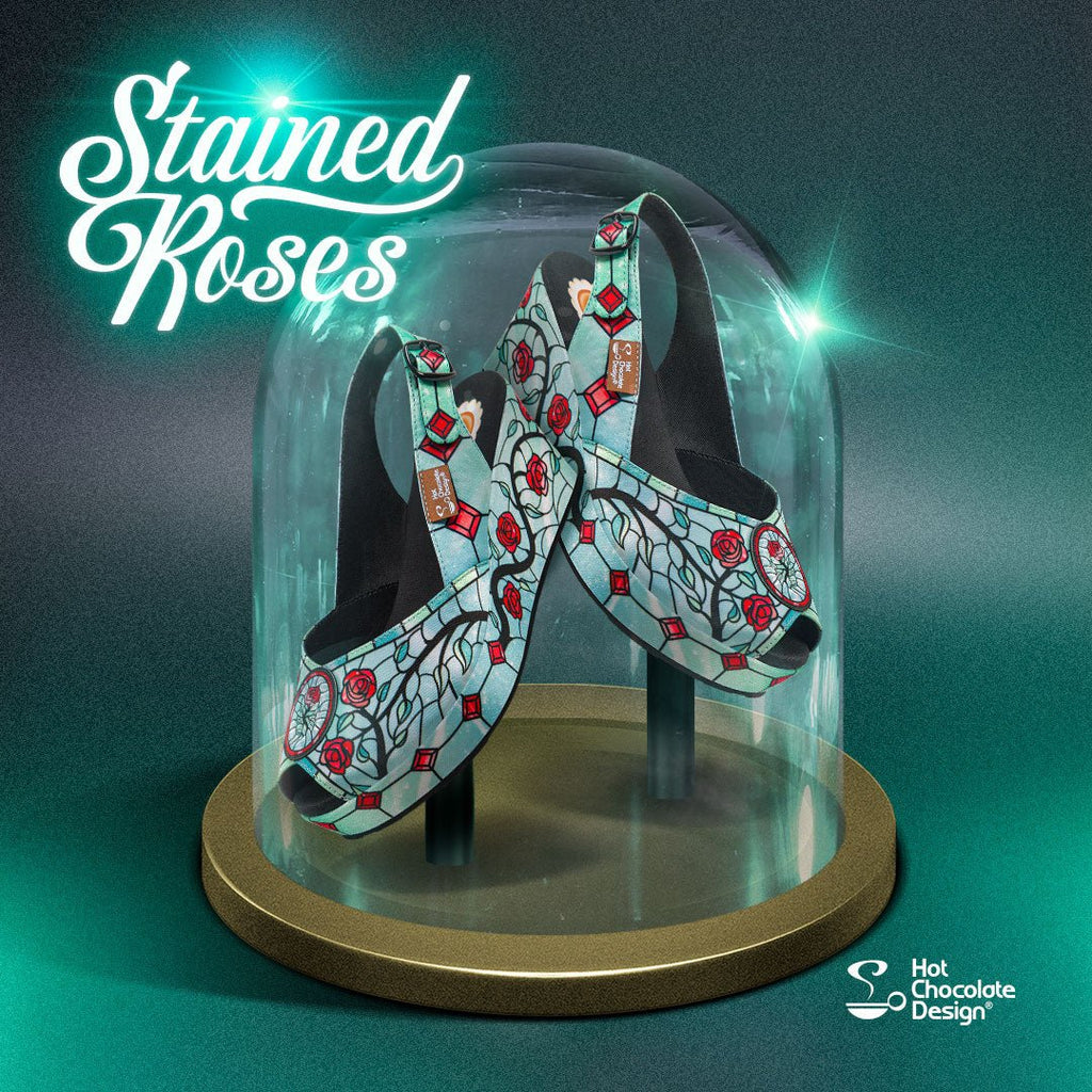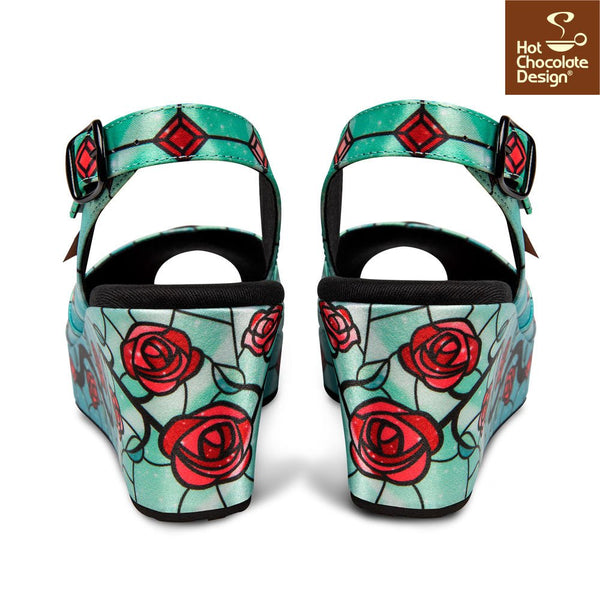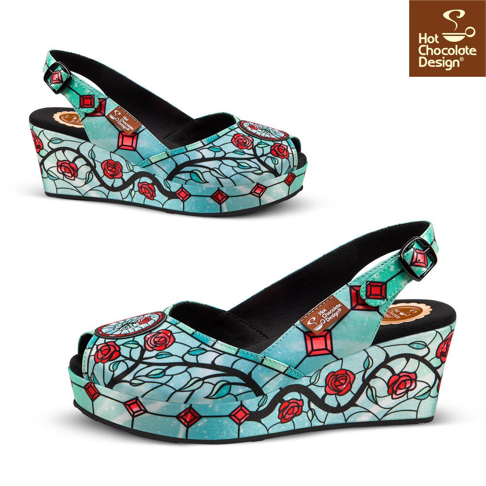 - Dessus en similicuir . Côtés et talon compensé en tissu imprimé. Doublure en tissu.